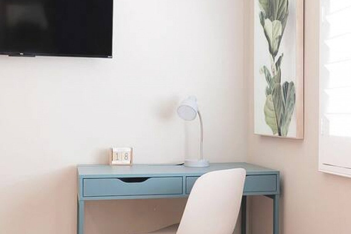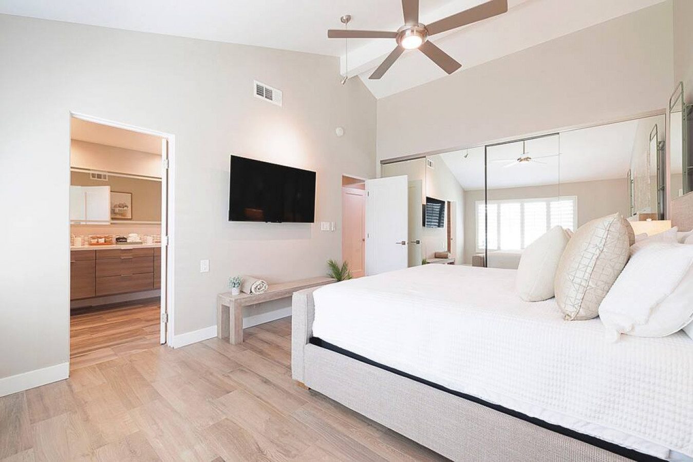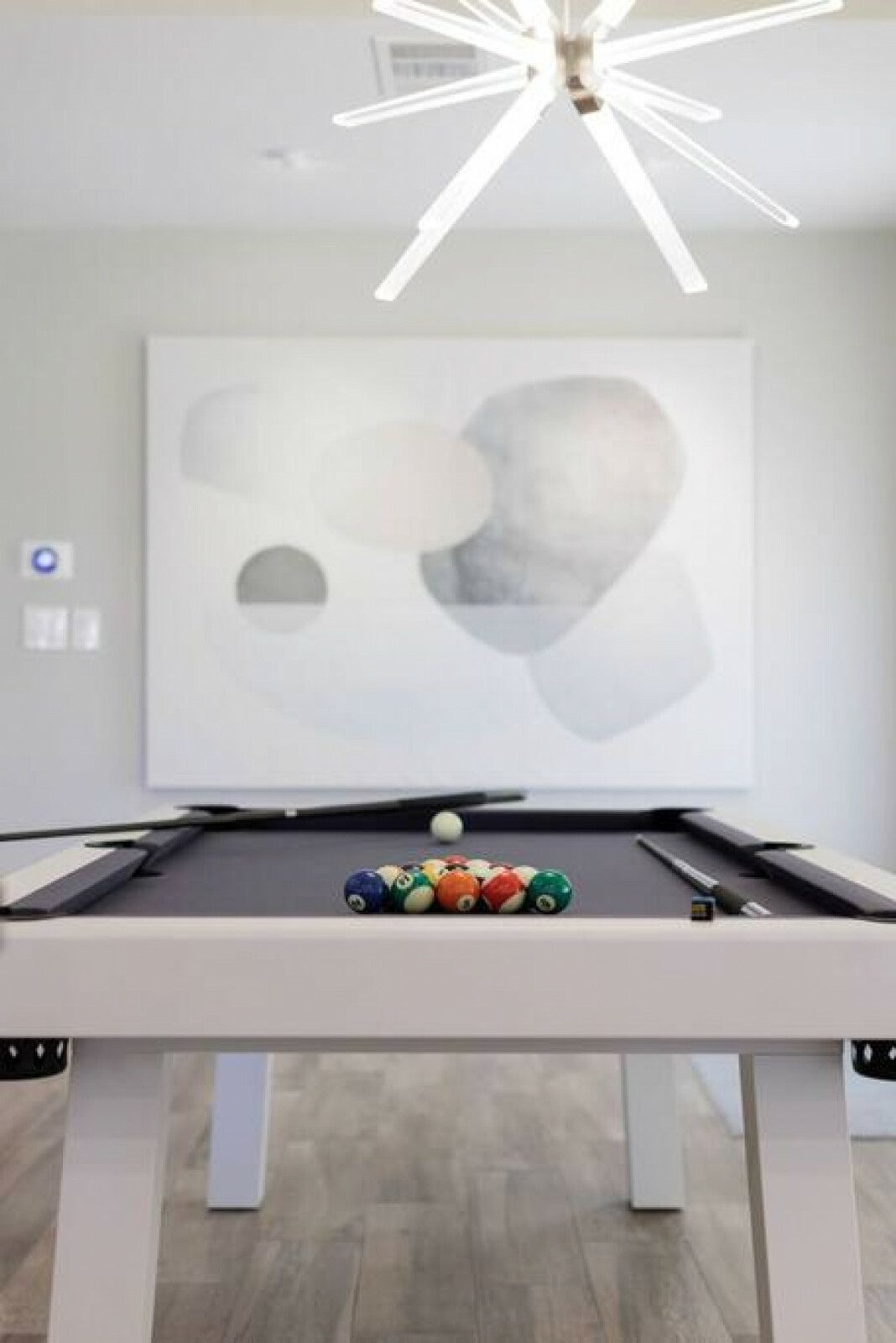 Get ready to relax, work and play in an oversized living room that has it all. Shoot pool with friends, snuggle up on the plush couch for a movie or catch up on news and sports. Stay productive with a dedicated workstation for your laptop, perfect for remote work or checking email. Enjoy plenty of natural light and stunning views of the resort-style landscaping and pool.