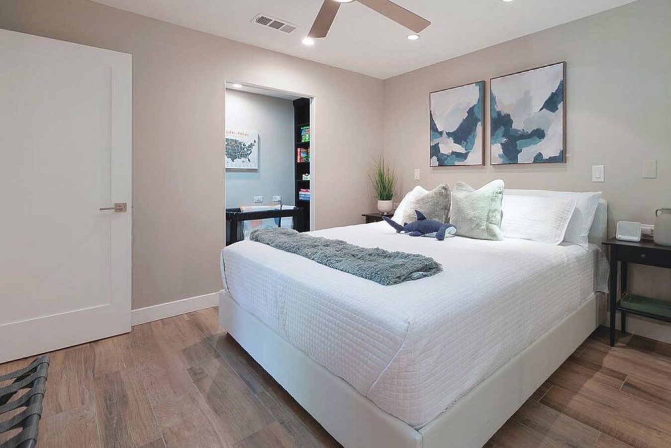 The primary bedroom en suite is nestled in a sperate wing of the home where you can enjoy total privacy. This room can also double as a family suite that sleeps 4.