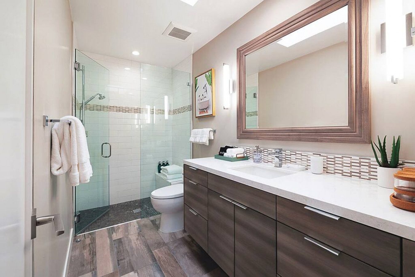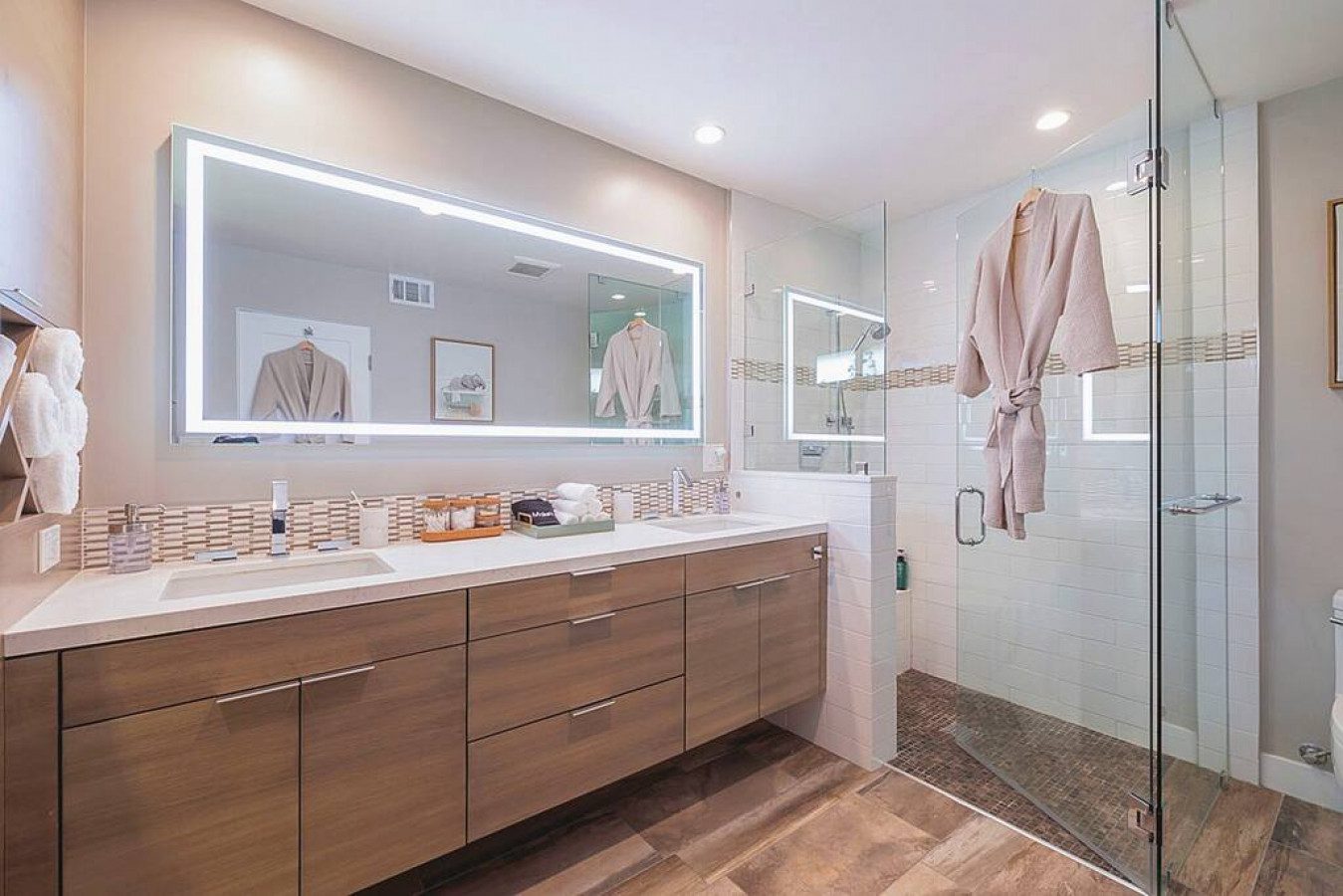 Aside from the primary bedroom bath there is a guest bathroom in the entrance and an additional full bath located in the hallway for guest bedrooms 2 and 3 with a shower tub and double sink.
